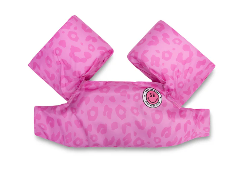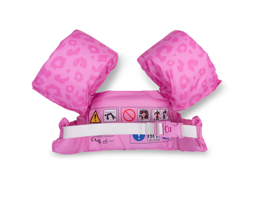 Laat jouw kindje veilig én in stijl het water in gaan met deze trendy puddle jumper in roze leopard print.